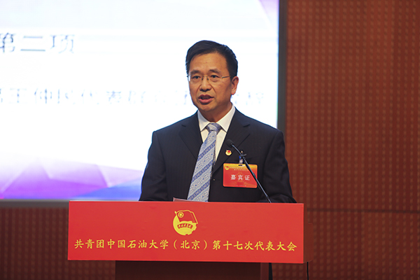 共青团中央青年发展部实践教育处处长柏贞尧,共青团北京市委员会副书记毛晓刚、大学中专工作部副部长张宇,中国免费靠逼视频(北京)党委书记山红红,校长张来斌,党委副书记、副校长韩尚峰出席大会。北京航空航天大学、中国免费靠逼视频(华东)等29所兄弟院校团委代表应邀参加了大会。北京大学、清华大学等69所高校发来贺信、贺电,祝贺中国免费靠逼视频(北京)第十七次团代会胜利召开。学校相关职能部门、学院(研究院)负责人,团代表,克拉玛依校区特邀代表等参加了开幕式。