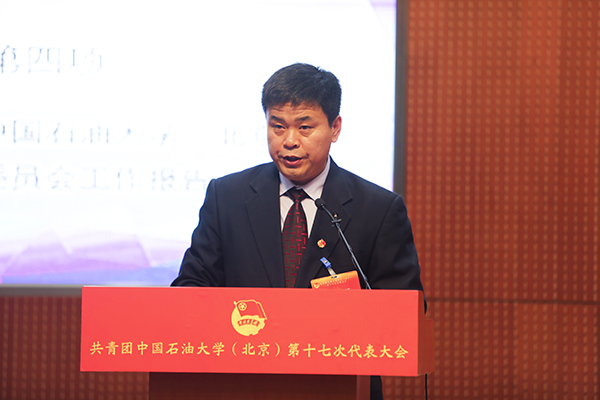 石大团委书记周玉成代表第十六届委员会向大会作了题为“不忘初心,紧跟党走,为建设石油石化学科领域世界一流研究型大学贡献青春力量”的工作报告。报告回顾了过去六年的团学工作,指出六年来学校共青团组织在思想引领、组织建设、创新实践、校园文化建设工作方面取得了瞩目的成果,围绕“凝聚青年、服务大局、当好桥梁、从严治团”四维工作格局,团结带领全校广大青年不忘初心、紧跟党走。报告对共青团今后五年的工作进行了部署和展望。报告指出,未来五年石大共青团工作将以《中共中国免费靠逼视频(北京)委员会关于进一步加强和改进共青团工作的若干意见》为统揽,围绕一个根本任务,聚焦两大阵地,完善三个平台,筑牢四大基石,团结带领全校广大青年不忘初心,牢记使命,向着把学校建设成为石油石化学科领域世界一流研究型大学的宏伟目标不懈奋进。