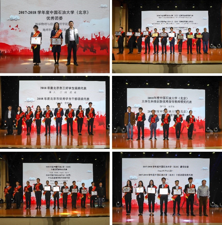 大会以“与新时代同行,为中国梦奋斗”为主题,展示了石大青年榜样的青春风采,对一年来在学校共青团工作中涌现出来的各类先进集体和优秀个人进行表彰。韩尚峰为荣获2018年全国“天翼·互联网+教育”进乡村暑期社会实践专项活动的优秀团队 “信息人·教育梦”以及荣获2018年“青年服务国家”首都大中专学生暑期社会实践的百强团队“圆梦大凉山,会梦教育行”和“助力北京冬奥,探访延庆组委”颁奖。与会职能部门负责人分别为获评学校优秀团委、优秀团支部、优秀学生干部、三好学生、优秀志愿服务项目、科技创新优秀指导老师及科技创新之星等28项荣誉的获奖代表颁奖。