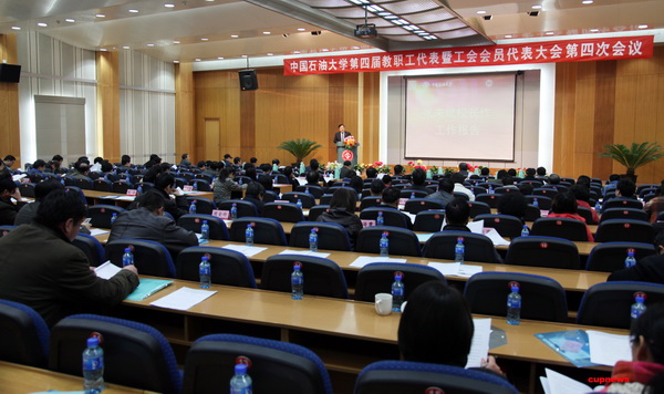 325下午,我校第四届教职工代表暨工会会员代表大会(简称“双代会”)第四次会议在学校翠宫招待所隆重召开。大会听取了校长张来斌所作的2010年学校工作报告、副校长陈大恩所作的学校2009年度财务工作报告;听取和审议通过了第四届教代会、工会工作的书面报告,工会财务工作的书面报告,工会经费审查委员会的书面工作报告,通报了第四届第三次教代会期间提案的处理情况。