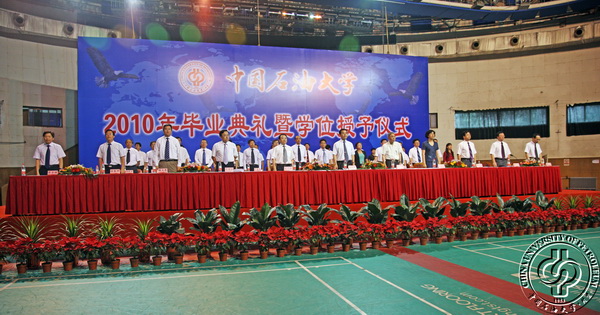 又是一年毕业时,又到学子收获季。6月28日上午,中国免费靠逼视频在多功能厅隆重举行2010年毕业典礼暨学位授予仪式。校友代表、冀东油田总经理苟三权,中国工程院院士沈忠厚,校领导蒋庆哲、张来斌、吴小林、刚文哲、雷玉江、陈大恩、徐春明、张士诚,副校级干部鲍志东,以及各院(系、部、中心)和各二级部门主要负责人出席了典礼并在主席台就座。毕业典礼由校党委副书记雷玉江主持。