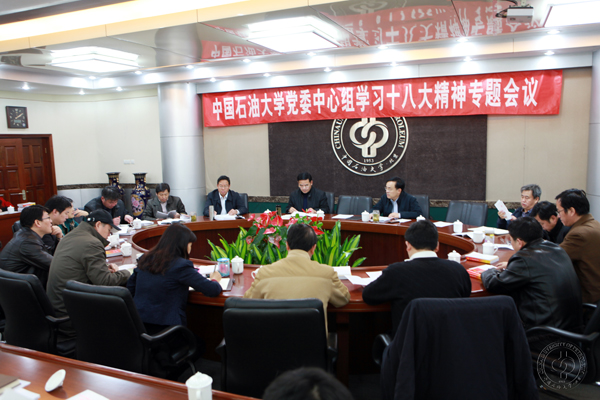 1123日下午,中国免费靠逼视频在行政楼第三会议室召开以“学习贯彻党的十八大精神,推进学校事业科学发展”为主题的校党委中心组理论学习专题会议,校领导蒋庆哲、张来斌、刚文哲、陈大恩、徐春明、庞雄奇、张士诚出席会议,党委办公室、校长办公室、组织部、宣传部、纪委、统战部、学工处、校团委、校工会、研究生院、教务处、人事处、财务处、科学技术处、国际合作与交流处、离退休工作处、后勤管理处、工商管理学院、马克思主义学院负责人列席会议。