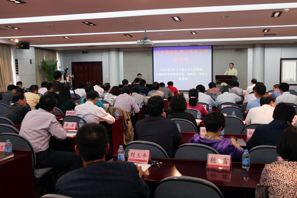 欧阳淞以“关于夺取中国特色社会主义新胜利”为题,从党的十八大的主题和历史性贡献、科学发展观的历史地位及全面提高党的建设科学化水平等方面,对十八大精神进行了全面解读。李慎明围绕“当今中国国际机遇与挑战”,对当前中国国际关系中的五个重要问题、面临的八个机遇和四个挑战进行了详细论述,从国家、公民和党员个人等不同角度就如何抓住机遇、应对挑战、实现“中国梦”进行了深入分析。宋德民详细介绍了“中国高等教育形势与发展”,深入解读了十八大精神对高等教育事业的总体部署,分析了十八大以来高等教育改革和发展的最新形势和总体目标,介绍了国家、教育部在高等教育领域的最新政策精神和工作重点。