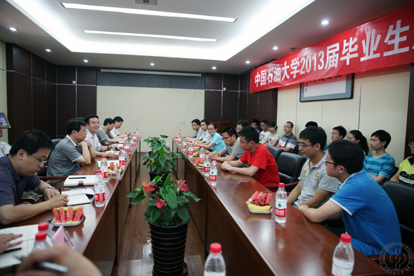 6月19日上午和6月21日下午,党委书记蒋庆哲、校长张来斌分别出席了在化学工程学院、机械与储运工程学院召开的2013届毕业生座谈会。毕业生代表,以及相关职能部门负责人参加了座谈会。