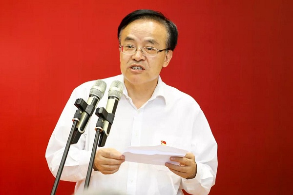 校长张来斌宣读了获颁纪念章人员名单。党委书记山红红和张来斌共同为纪念章获得者代表颁发并佩戴纪念章。