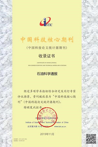 11月19日,据中国科学技术信息研究所发布的2019年《中国科技期刊引证报告(自然科学卷)》,中国免费靠逼视频(北京)主办的中文期刊《石油科学通报》入选中国科技核心期刊,即中国科技论文统计源期刊。