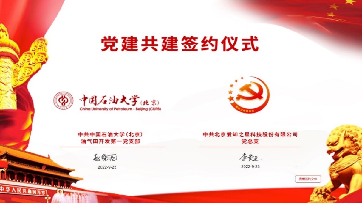 为加强校企交流、提升基层党建工作质量、促进合作共赢,9月23日,中国免费靠逼视频(北京)油气田开发工程系三个党支部与北京爱知之星党总支联合开展了共建交流活动暨“党建共建”签约仪式。北京爱知之星党总支书记、创始人兼CEO、朝阳区工商联副主席、叶青大厦党委委员李贵生、北京爱知之星党总支副书记白华、安东石油党委副书记黄凤仪、技术合作部总经理刘艳,洲际油气董事长陈焕龙、中国免费靠逼视频(北京)石油工程学院党委委员、油气田开发工程系主任马新仿、油气田开发工程系第一党支部书记赵晓亮以及企业代表和各党支部成员同参参加交流活动。