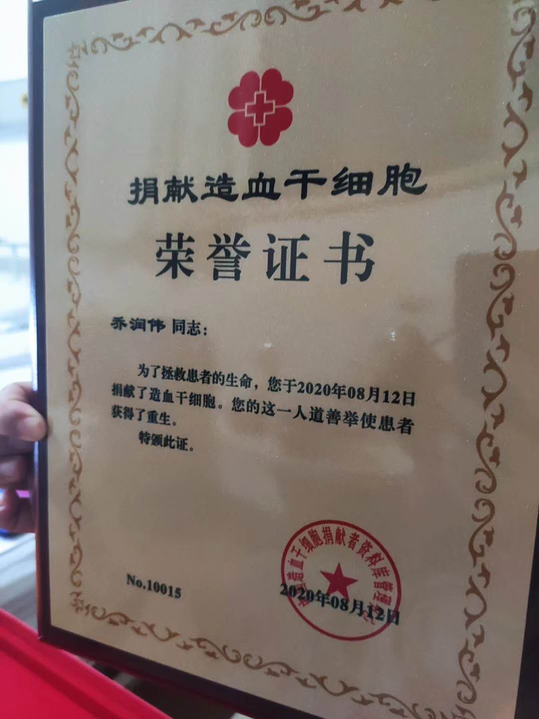 谈到捐献的荣誉,乔润伟表示“我不算什么楷模,我只是做了一件好事的普通人”。同时,他也希望能通过这次捐献行为,鼓励更多人加入到中华骨髓库。