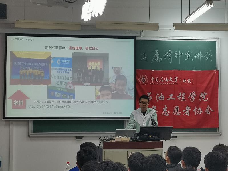 苏飞宇学长分享了自己在北京延庆区世园会和献血急救等方面的志愿经历与体会,并且形象生动地向我们解读了作为合格的志愿者应当尽到的责任与义务。