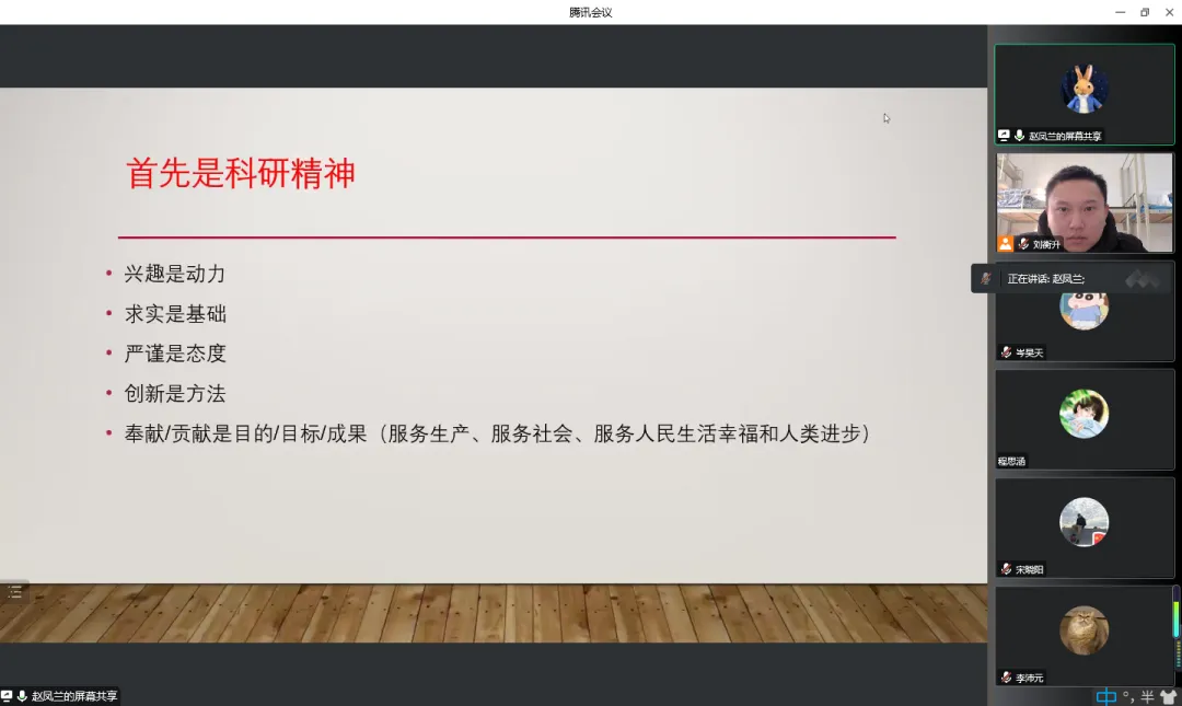 肖亚楠老师作总结讲话,他代表学院团委对赵老师表示衷心感谢。他强调,疫情虽仍在蔓延,却阻挡不了我们的热情和决心,希望同学们返家之后,在做好疫情防控的前提下,做到“科研不停步、攻关不停歇”,积极开展各项科研工作,用实际行动助力学院科研高质量发展。