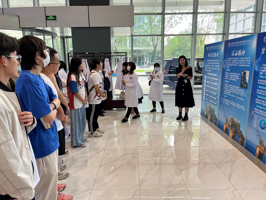 最后,学院师生在工程师的带领下走进实验室,参观各式各样的实验仪器以及自主研制的化学药剂,观看了地下原油流动和驱替的实验过程,近距离接触海洋石油科技,坚定了学生们向海图强、能源报国的理想信念。