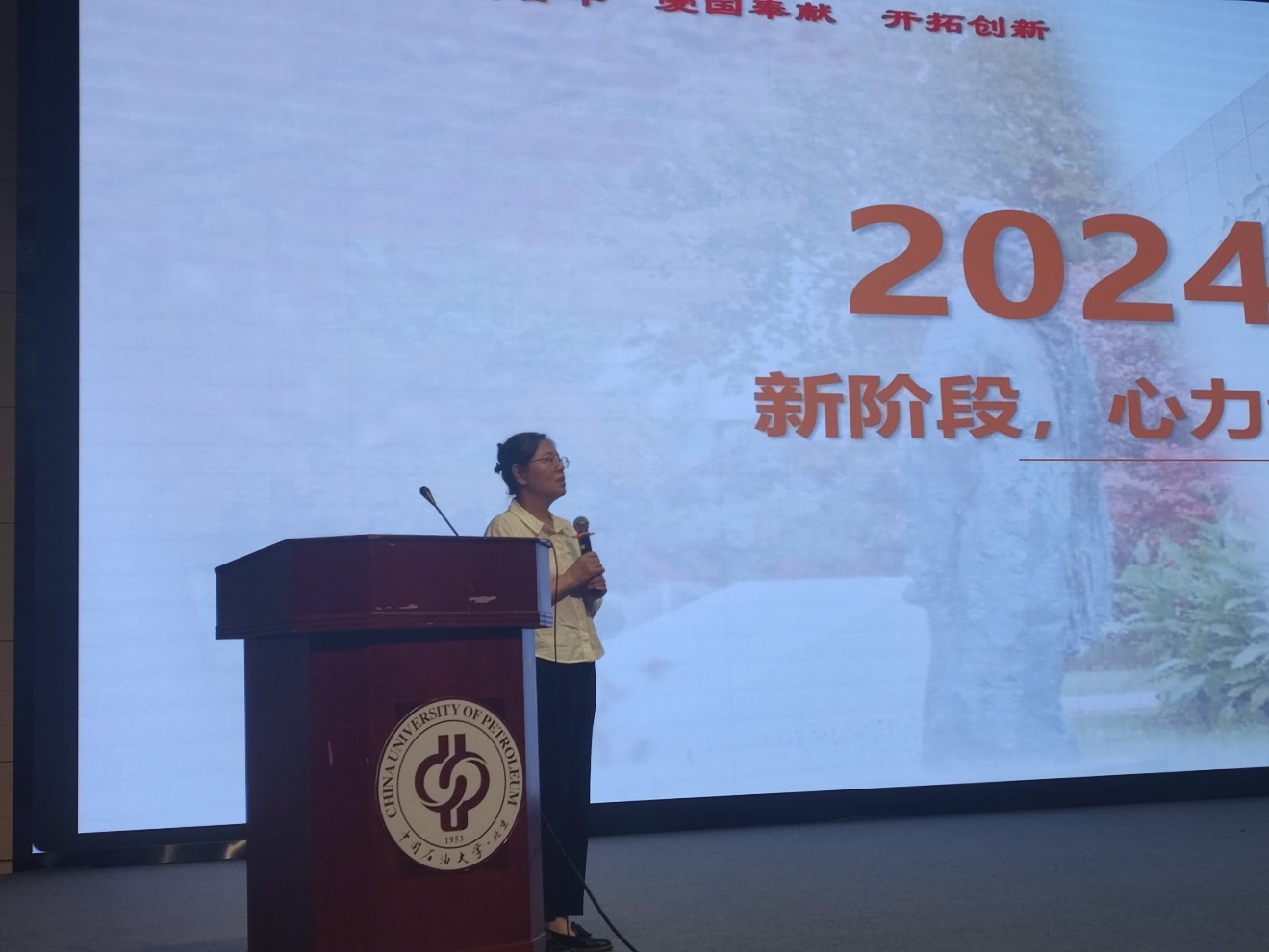 为筑牢学生心理健康和校园安全防线,进一步帮助2024级研究生新生适应校园生活、尽快实现角色转变,8月27日下午,石油工程学院在中油大厦三层报告厅开展石油工程学院2024级研究生心理健康、校园安全专题讲座。中石大心理健康教育及咨询中心教师郭梅英、保卫处正科级干事王超、2024级研究生辅导员李文豪出席讲座。讲座由李文豪主持。