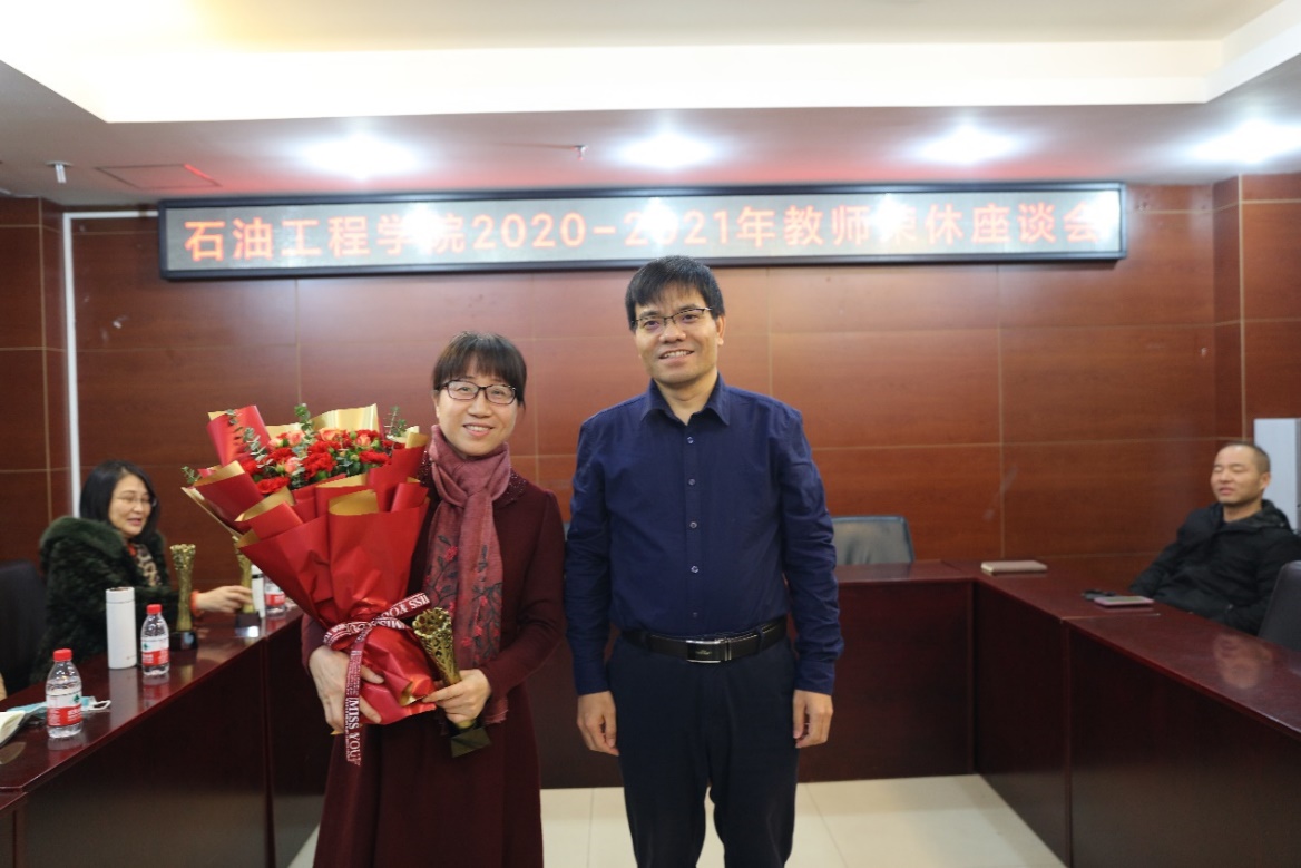学院党委书记黄世军、副院长王敬、油气田开发工程系主任马新仿分别对4位老师把最美好的青春年华奉献给石油教育事业表示诚挚的敬意,感谢他们数十年来为学院发展做出巨大贡献,,希望退休教师继续关注学院发展、常回家看看,并祝愿退休教师全家幸福、万事如意、身体健康、心情愉快!