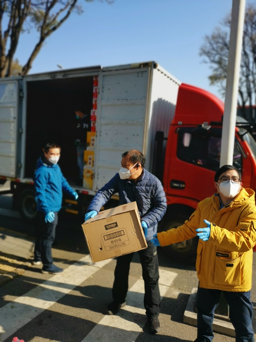 按照学校安排,学院承担了部分隔离点慰问品的发放工作。14日上午,学院教师志愿队15人在副院长王宴滨的带领下,迅速集结、快速完成了370份慰问物资的搬运、分装和运送。学院党委书记黄世军、院长宋先知与老师们一同将中国石油集团公司捐赠的大礼包运送、卸载至大兴兴航公寓。