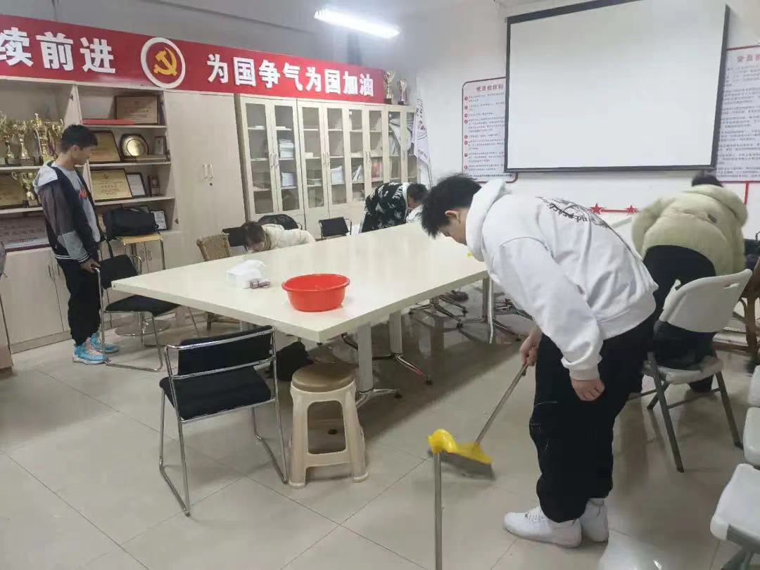走进校园公共区域,开展“擦拭雕像、摆放车辆、清扫自习室”等校园环境清理工作,帮助青年学生树立“校园是我家,美丽靠大家”的环保意识。开展学院公共区域“大清扫·大清理”义务劳动,号召青年学生行动起来,营造整洁舒适的校园学习生活工作环境。组织60余名党员维护铁人王进喜、北宋科学家沈括等校园雕像,认真擦洗每个角落,用实际行动致敬伟人。组织20余名团员在校园教学区域清捡垃圾、清除杂物,分类分区域摆放自行车、电动车,共同营造“校风清净、学风清新”的良好环境。