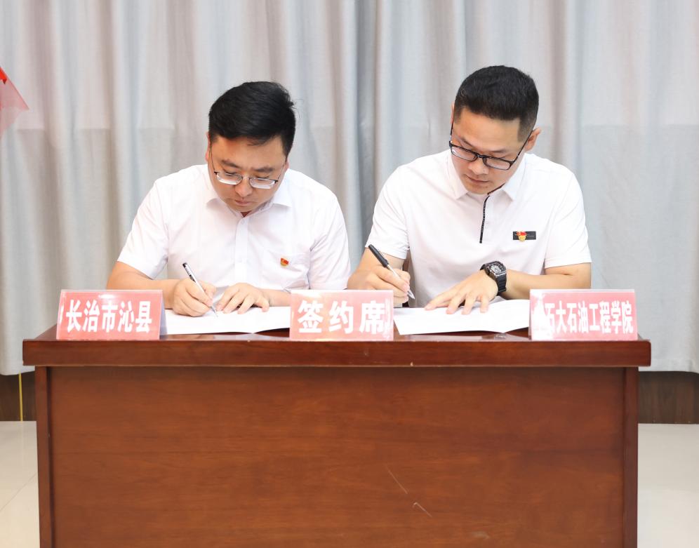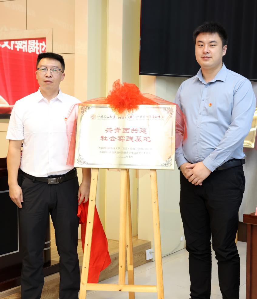 石油工程学院团委书记肖亚楠和沁县团县委书记邱晓刚就共青团共建社会实践基地签约并揭牌。
