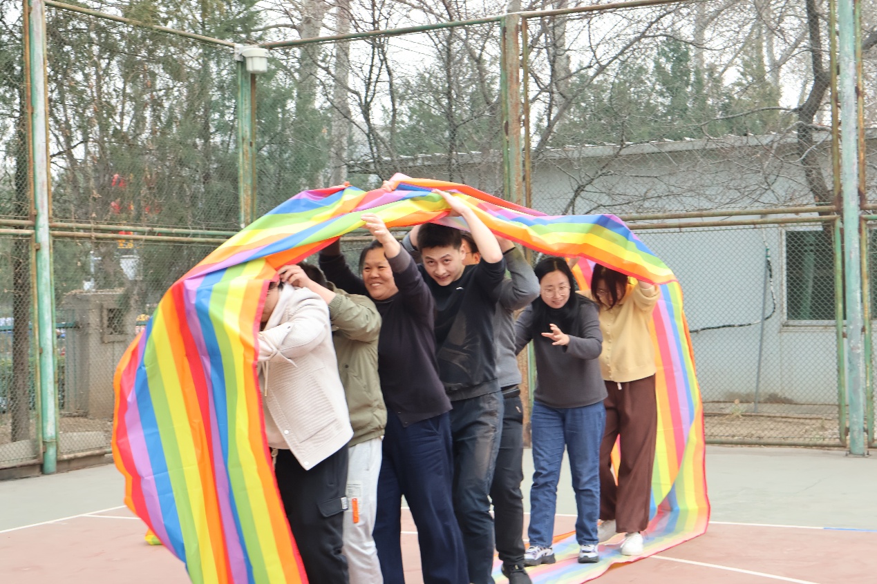 游戏环节同样精彩。“珠行万里”中,师生们紧密配合,让小球顺利抵达终点;“车轮滚滚”里,大家齐心协力推动“车轮”前进;“激情节拍”的整齐节奏展现出团队的凝聚力;定点投篮处传来阵阵喝彩。