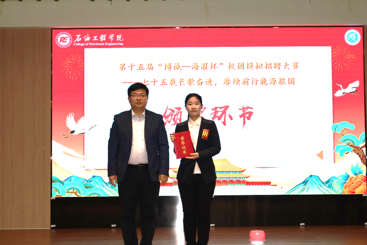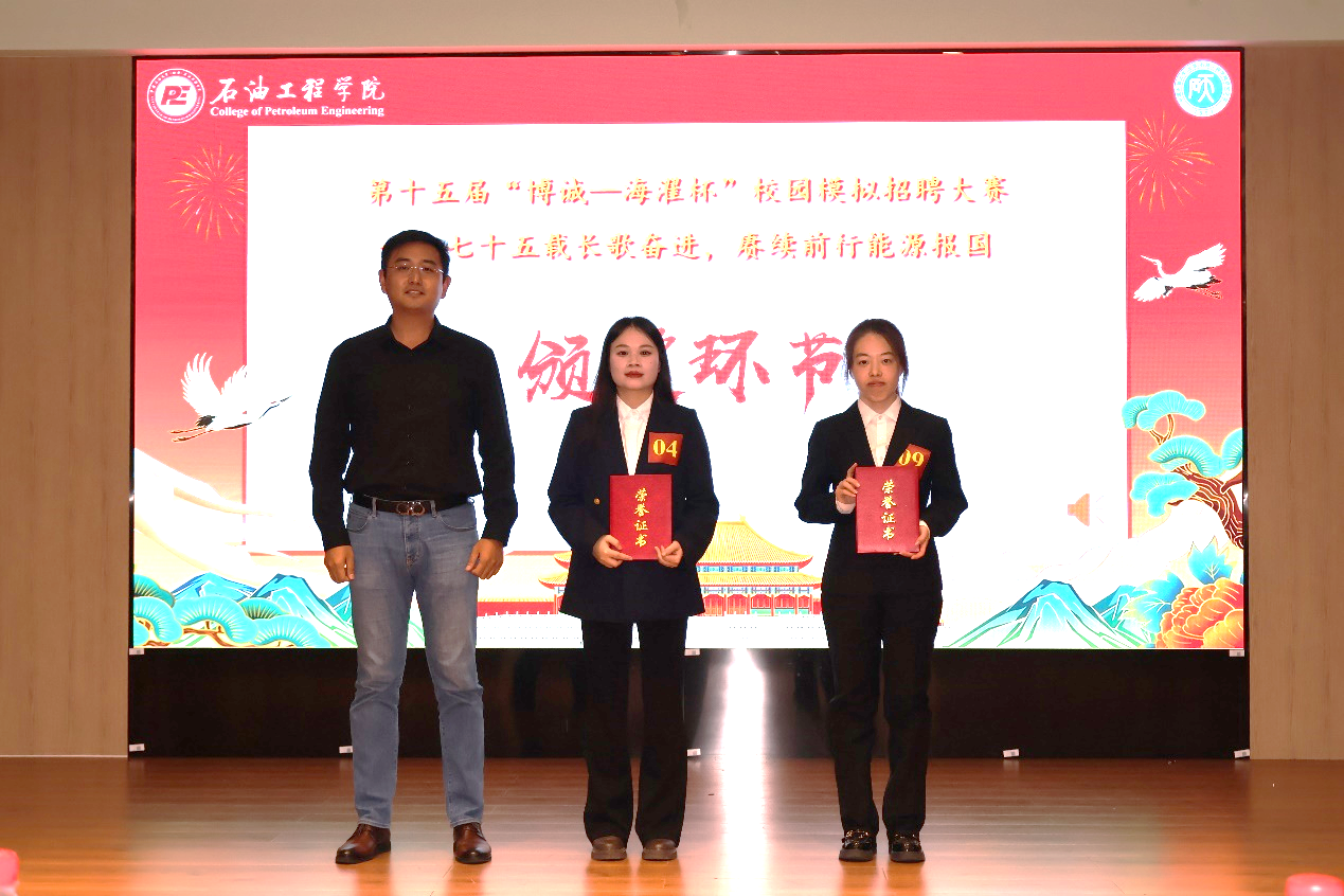 第十五届“博诚—海濯杯”校园模拟招聘大赛在掌声中落下帷幕。大赛的圆满完成标志着参赛学生求职能力的显著提升、校园职业生涯规划教学的成功实践、校企双向合作模式的纵深发展。未来,石油工程学院将不断创新工作方法和活动形式,扎实推进大学生就业指导工作,实现学生自我认知与职业规划的有机融合。