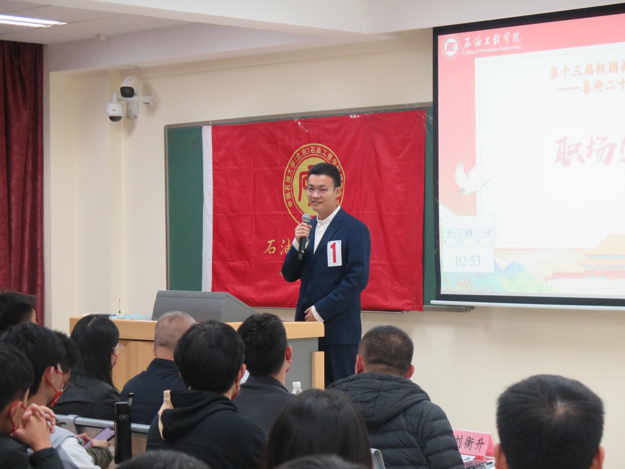 为提升学生就业能力,10月9日,中国免费靠逼视频(北京)石油工程学院在东教211举办第十三届校园招聘模拟大赛。本届大赛以“喜迎二十大,筑梦向未来”为主题,邀请到校友企业家北京石大博诚科技有限公司董事长冯海平、北京叁参研学科技有限公司总经理张宁,人力资源专家Wyser(纬择)制造团队负责人王玉镜担任大赛评委,石油工程学院团委负责人、相关辅导员及学院学生代表共计120余人参加活动。大赛得到校友企业北京安捷瑞软件有限公司独家赞助。