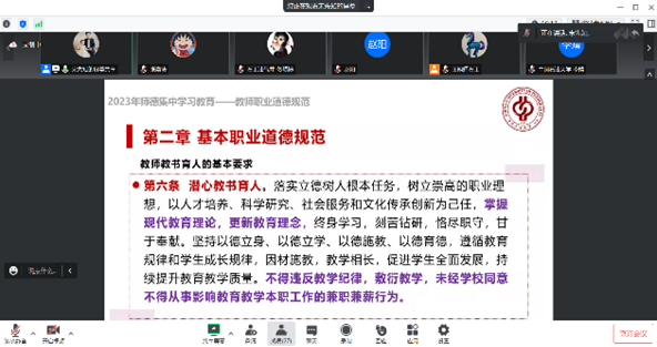 石油工程学院院长宋先知带领青年教师们深入学习了学校《教师职业道德规范(修订)》全部准则与条例,强调了教师个人品德、教书育人基本要求与职业道德基本规范等方面的内容,并对青年教师在加强个人学习、锤炼个人品格、提升能力素养、明确使命担当等方面提出殷切期望。