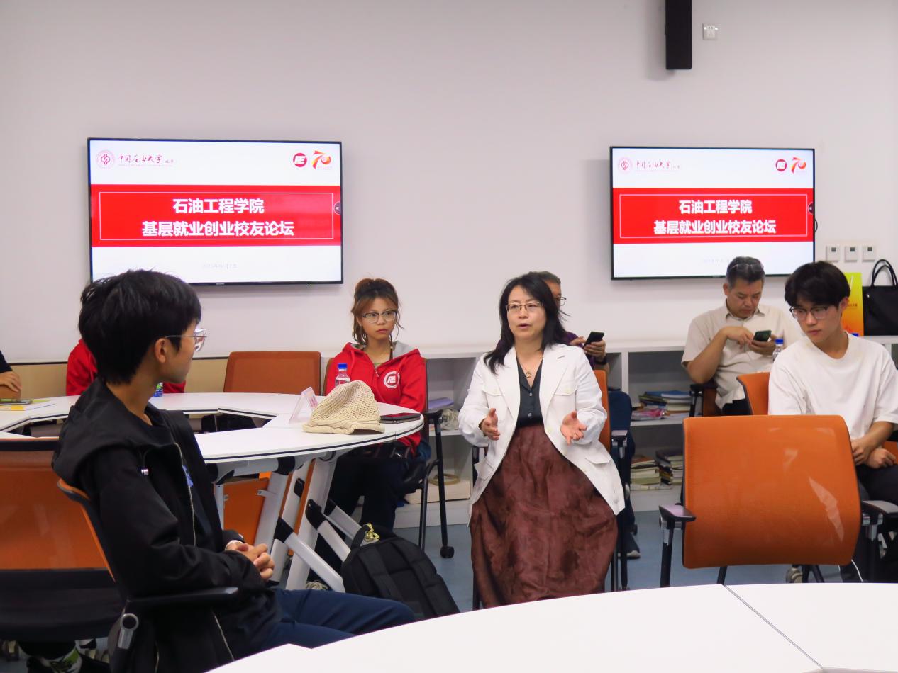 本次基层就业创业校友论坛充分发挥了优秀校友的榜样作用,使同学们近距离接触优秀榜样,学习优秀校友成功的经验。通过此次活动,同学们对自己大学生活有了更加明确的规划,开阔了眼界,在场同学纷纷表示,聆听校友分享,备受鼓舞与启发,要在今后的学习、生活和工作中将始终牢记习近平总书记“志不求易者成,事不避难者进”的殷殷嘱托,脚踏实地、挺膺担当,为祖国石油行业发展奉献青春力量。