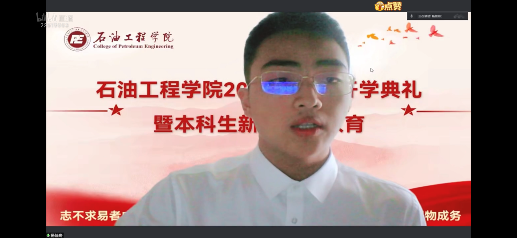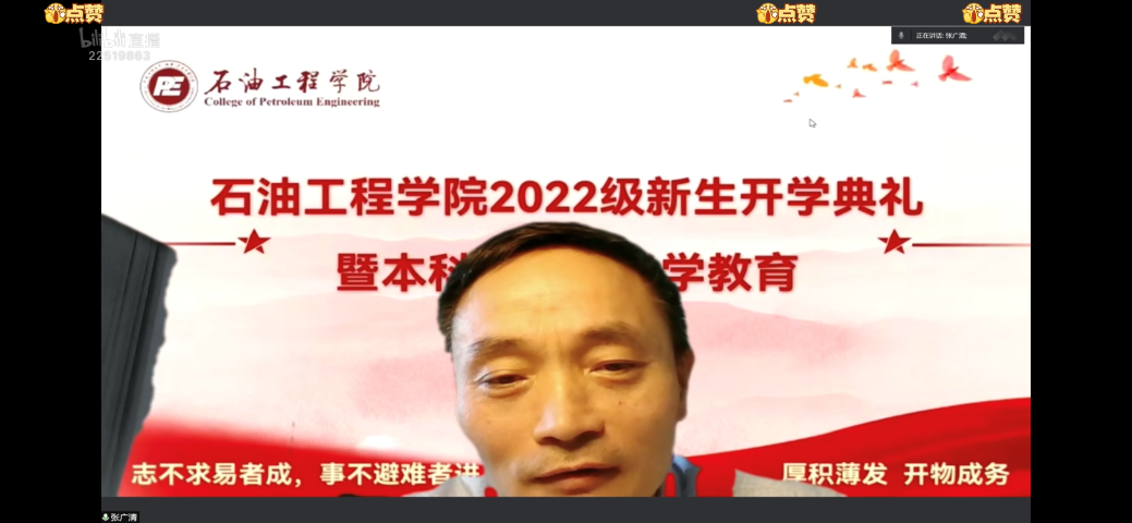 8月27日上午,石油工程学院举办2022级新生开学典礼暨本科生新生入学教育,中国免费靠逼视频(北京)副校长张广清,石油工程学院党委书记黄世军,副院长刘伟、王敬、王宴滨,党委副书记刘东东,团委书记肖亚楠,2022级研究生辅导员出席本次活动。活动由2022级本科生辅导员李季龙主持,全体2022级新生通过哔哩哔哩直播观看典礼。