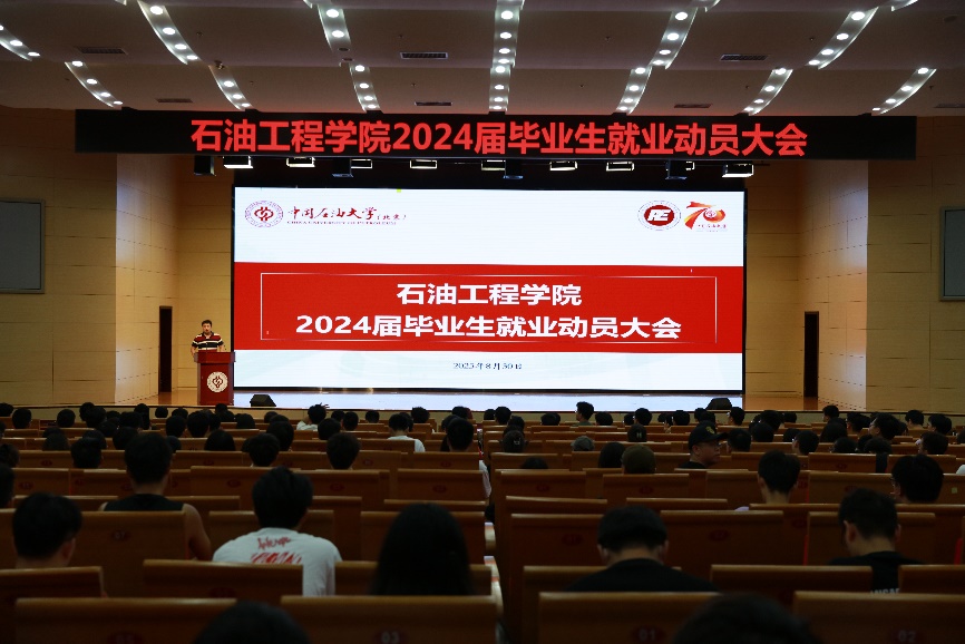 为做好2024届毕业生就业工作,8月30日下午,石油工程学院在中油大厦三层报告厅举办2024届毕业生就业动员会。就业指导中心副主任范晓静、石油工程学院党委副书记刘东东、团委书记肖亚楠出席会议。动员会由肖亚楠主持,毕业班辅导员及2024届本硕博毕业生近400人参加会议。