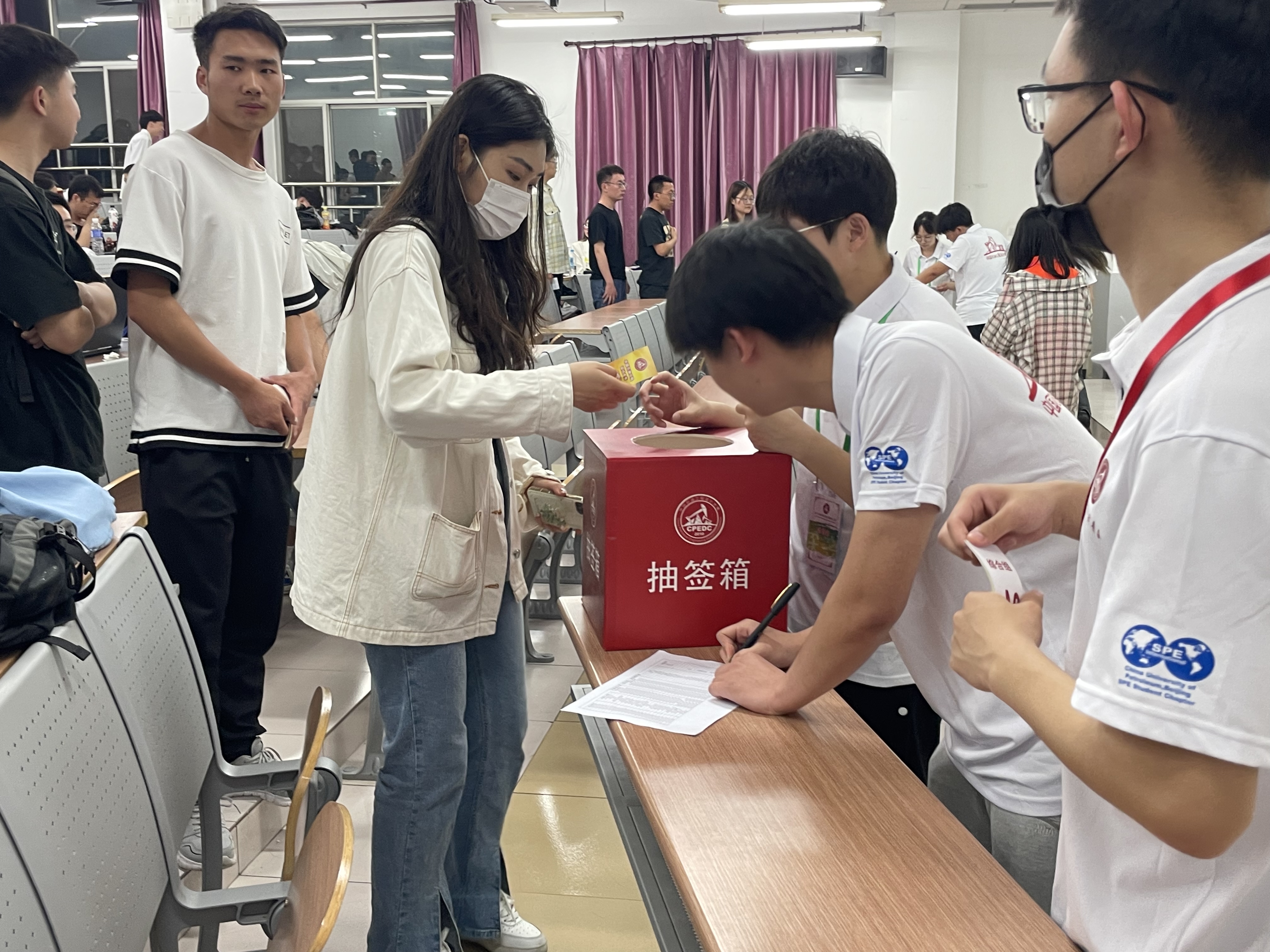 刘思辰详细介绍了总决赛赛程安排、抽签分组等各项事项,并对参赛选手存在的问题进行解答。会后,参赛选手通过总决赛答辩抽签确定答辩顺序。