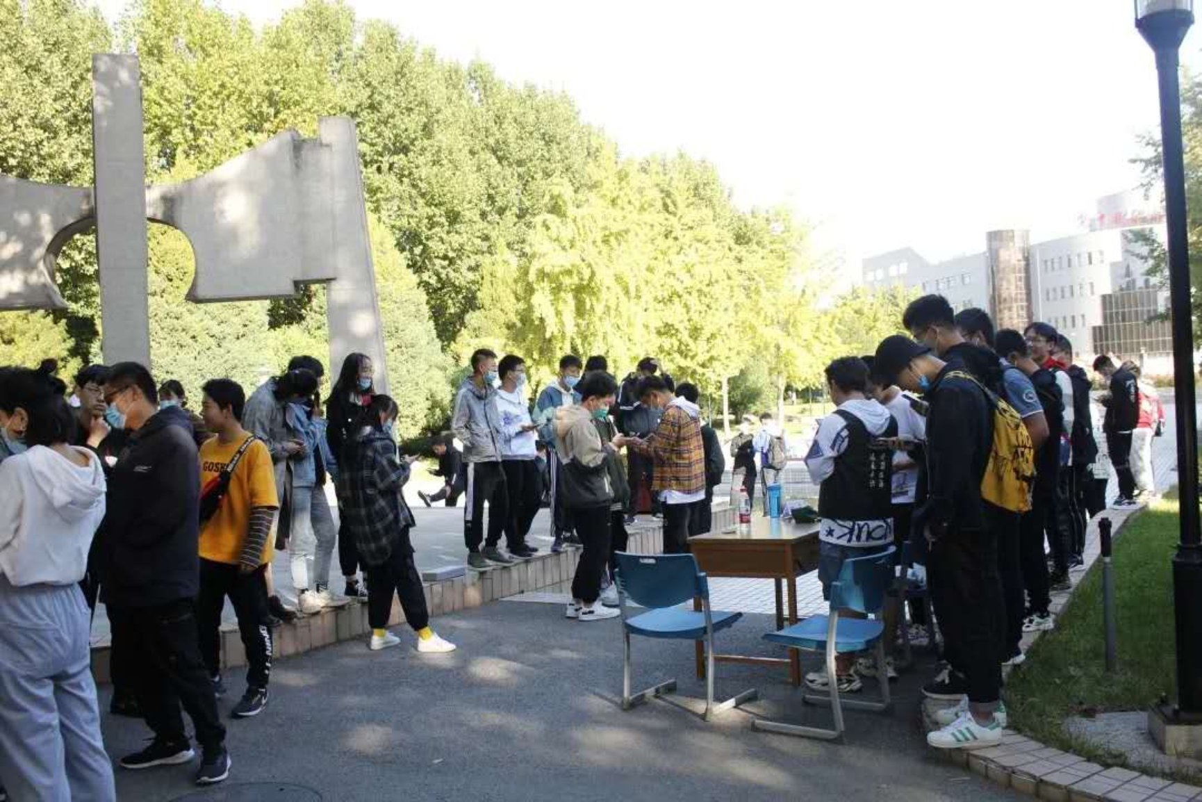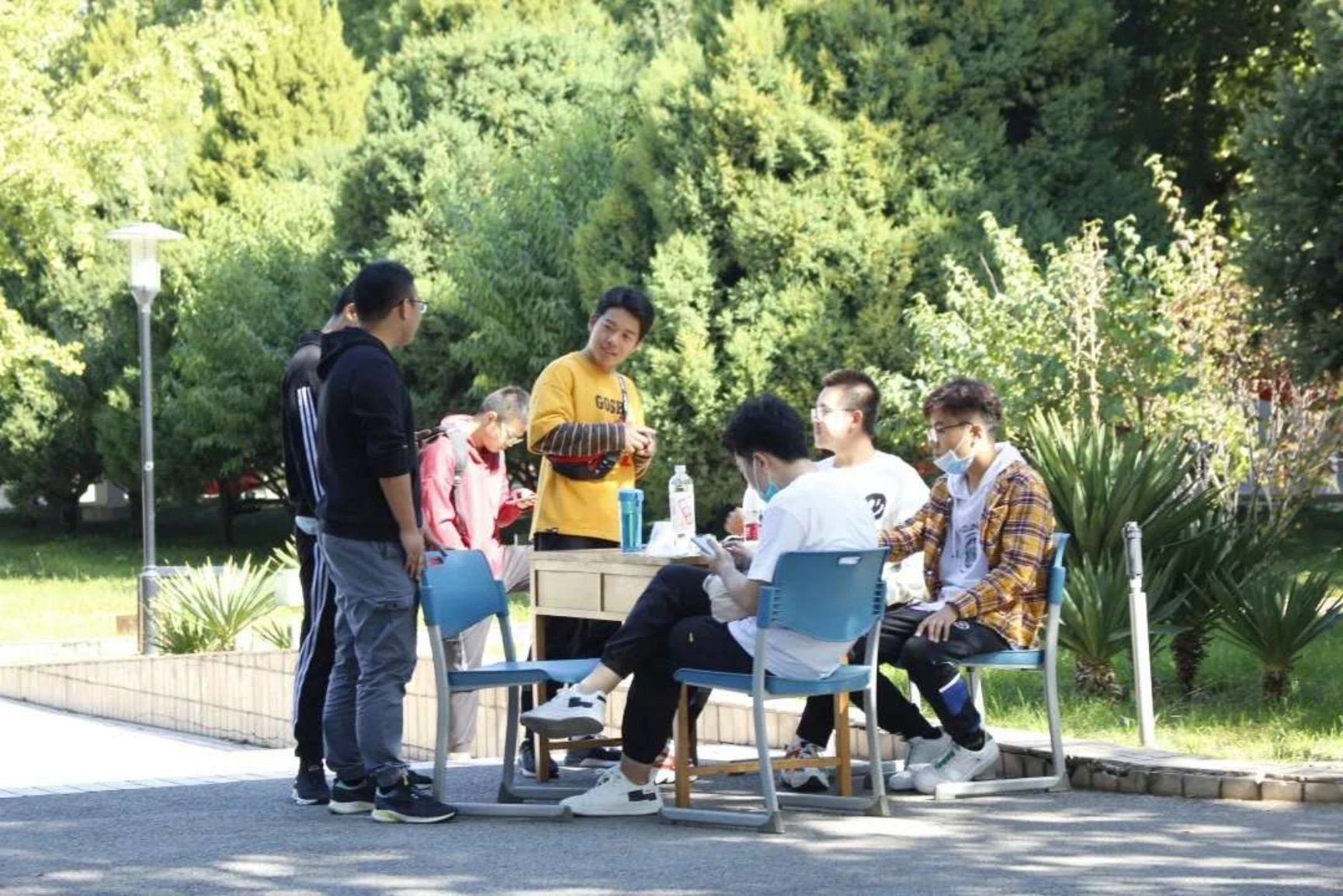 本次活动报名以宿舍为单位。活动前夕,工作人员在学校南北校区共设置了8个打卡地点,并同时设置了小活动。如锻炼身体的蹲起跳、考验宿舍默契度的你画我猜、考验知识储备的团员义务背诵等等。参赛队伍早晨八点半在北校区喷泉旁集合,工作人员对各参赛人员进行“通行证”的发放和安全提醒。参赛队伍只有通过所有关卡,收集好各关卡“守关人”刻在“通行证”上的印章贴纸,才算通关。