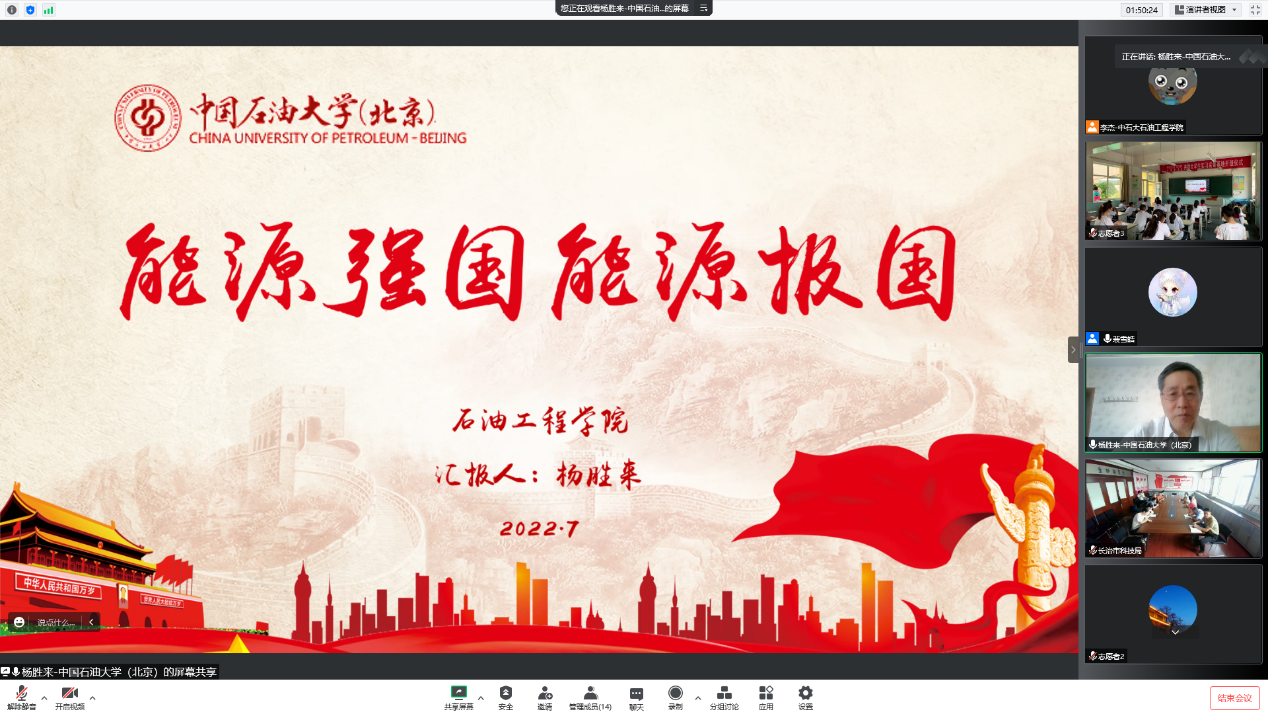 开营仪式结束后,中国免费靠逼视频(北京)石油工程学院油气田开发第二党支部杨胜来教授为小朋友们带来了一场精彩的“助力双碳,强国有我”线上公开课。杨胜来教授深入浅出地讲述了石油的起源,结合实例生动活泼地介绍了石油在生活、工业中的应用,并为小朋友介绍了我国石油工业的发展史,号召小朋友们以铁人王进喜为楷模,积极学习大庆精神、铁人精神。小朋友们听的专心致志,学的有滋有味。公开课促进了小朋友对我国能源发展史的了解,在小朋友的心中播下了能源强国、能源报国的种子。