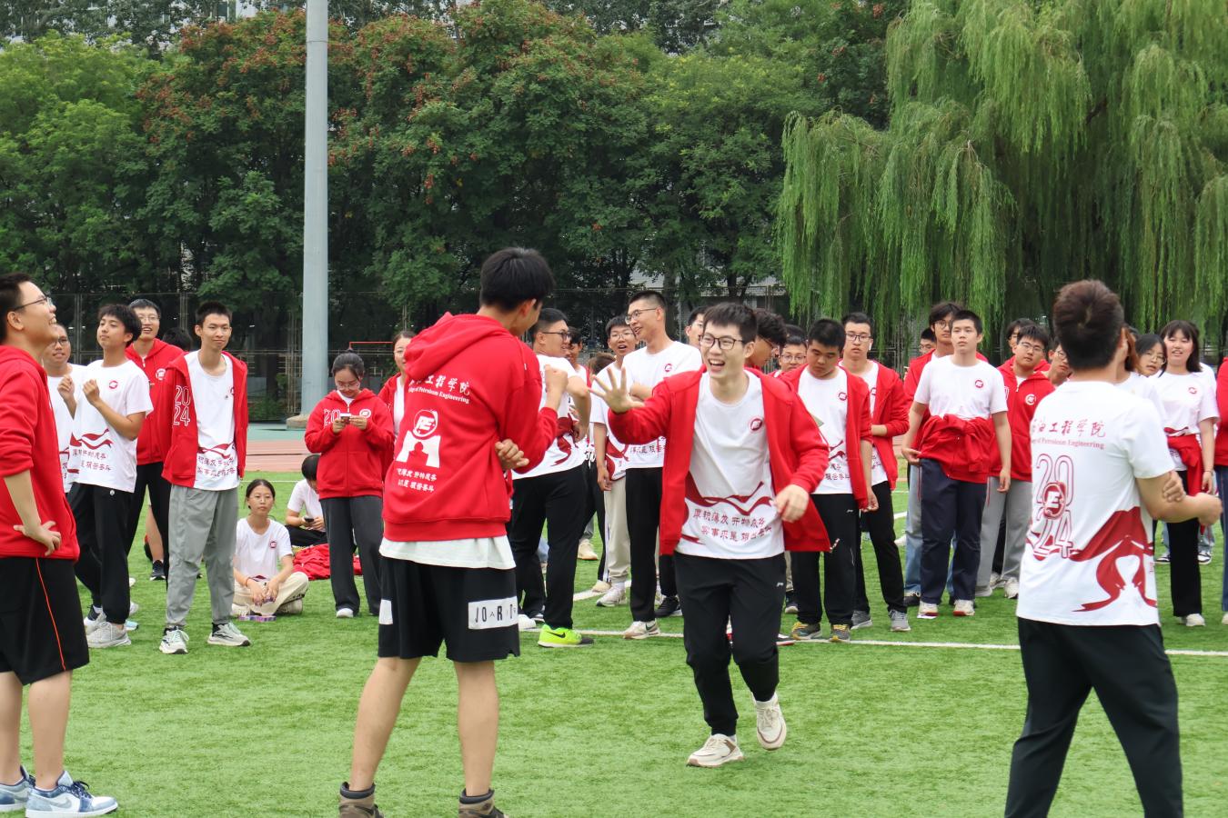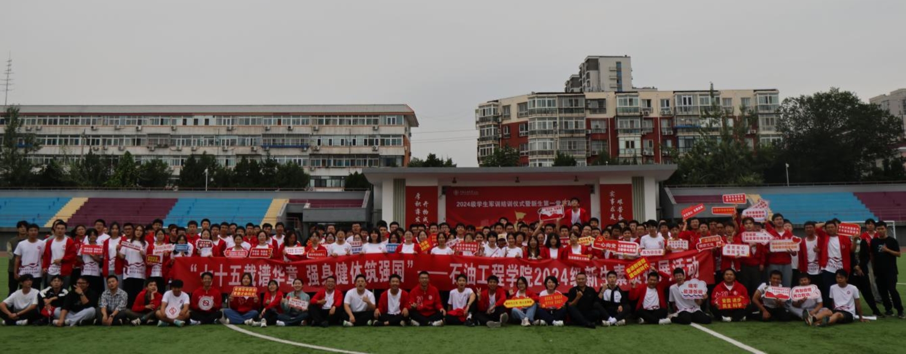 为进一步提升新生班级凝聚力和集体荣誉感,增强学生爱校兴校荣校意识,建立积极健康的心态,以强健体魄和优异成绩迎接中华人民共和国成立75周年。9月8日,石油工程学院在红旗操场举办“七十五载谱华章 强身健体筑强国”新生素质拓展活动,2024级全体本科新生参加。