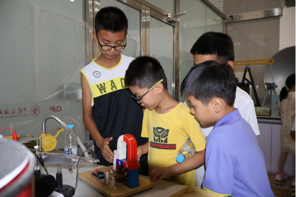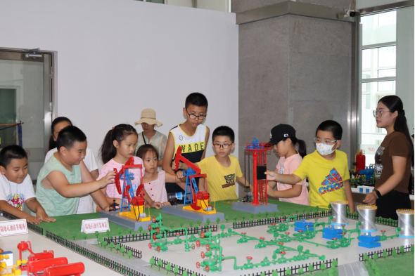 学生们通过模型了解了石油和天然气的开采、运输方式,认识了抽油机、往复式压缩机等油气装备,并通过物理演示装置和趣味科技产品,感受了石油装备、储运工程、物探勘查、地球物理测井技术、海洋油气钻采方面等多学科领域的教学场景。