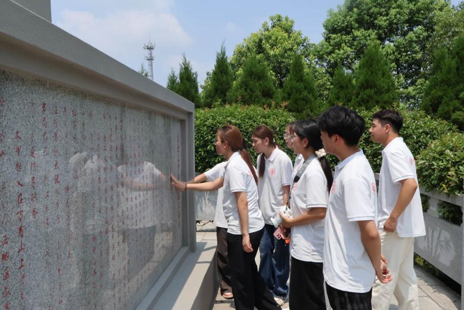 图为讲解员为实践团成员讲解诗墙文化的故事
