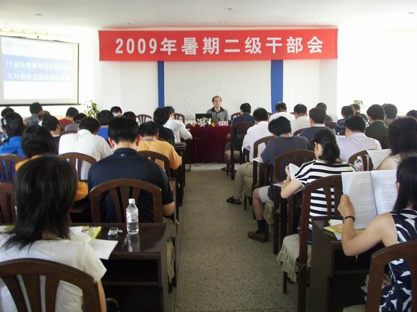 2009年7月10日至14日,学校在南戴河实习基地召开了暑期二级干部会,研究和部署学习实践科学发展观活动整改落实阶段的各项工作。全体校领导和二级干部出席会议。