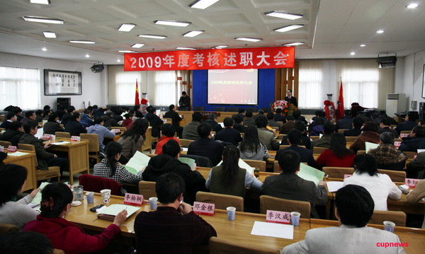 2010年1月28日-29日,我校在第四会议室召开了2009年度考核述职会。校领导、全体党委委员和纪委委员、全体二级干部、学术委员会委员、教代会主席团成员、党代会部分代表、民主党派负责人、各级人大代表和政协委员、教师代表、职员代表、学生代表等128人参加了述职会。
