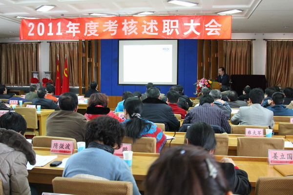会上,全校39个处级单位的主要负责同志代表本单位总结汇报了2011年度工作,与会人员对处级单位领导班子进行了民主测评。
