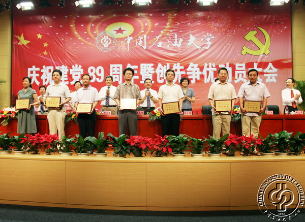 会上,新入党的教工党员和学生党员代表在组织部部长鲍志东的带领下庄严宣誓。党委副书记刚文哲宣读了《关于表彰2008-2010年度校级先进集体和先进个人的决定》。地球科学学院地质学系等8个单位荣获“先进集体”荣誉称号,刘奋等7名教师荣获“劳动模范”荣誉称号,于福生等26名教师荣获“优秀教师”荣誉称号,芦鸿娟等 27名教师荣获“优秀教育工作者”荣誉称号。