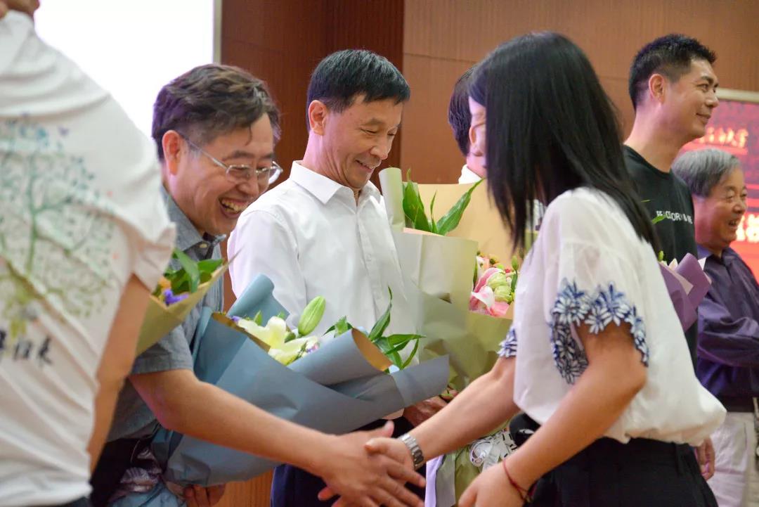 会上,返校校友代表为任课老师代表梁景伟、胡庆喜、李相方、张宝生、卢春喜、王贵文、季汉成、钱步仁、曹剑锋老师献上鲜花,感激老师们的拳拳师恩。