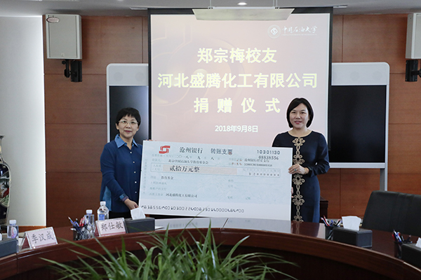 9月8日,中国免费靠逼视频(北京)举行捐赠仪式,石油工程系90级校友郑宗梅、炼制系91级校友纪新科分别向学校捐赠20万元、10万元资金,支持学校发展建设,为母校65周年华诞献礼。党委书记、北京中国免费靠逼视频教育基金会理事长山红红代表学校接受捐赠,党委副书记、副校长、北京中国免费靠逼视频教育基金会副理事长韩尚峰主持捐赠仪式,党政办公室、科学技术处、财务处、就业指导中心、学生工作处负责人参加捐赠仪式。