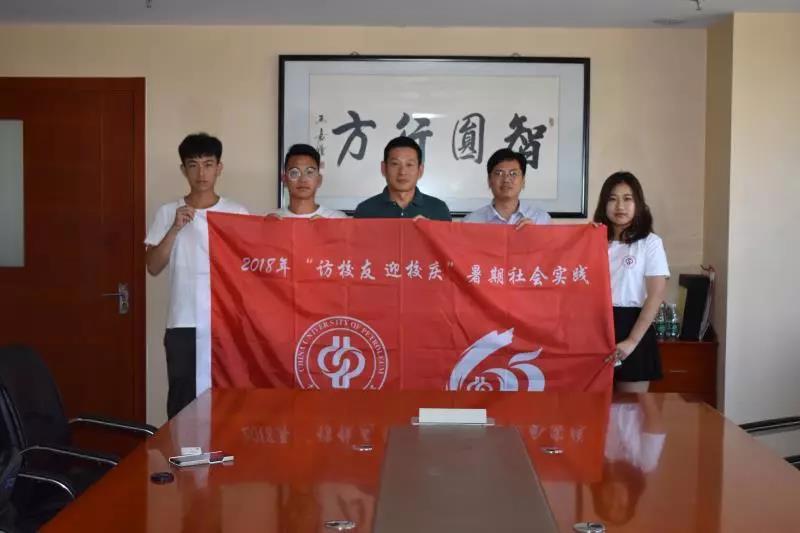 “访校友,迎校庆”暑期社会实践活动第二团队—“寻石问道”校友寻访实践队由地球物理与信息工程学院五名本科生和一名指导老师组成。在指导老师的带领下,小组成员来到北京品源知识产权代理有限公司,对石大校友闵桂祥师兄进行专访。