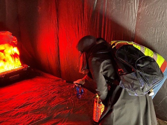 活动现场设置了消防安全知识答题、消防应急箱演示教学、灭火器体验与烟雾逃生体验四项活动,工作人员向现场师生讲解了灭火器、灭火毯的使用方法,介绍了烟感、手动报警器等常见的消防报警设备以及消防应急箱等装备;并依托模拟灭火实训和烟雾逃生装置,现场人员通过模拟火灾疏散演练、体验灭火操作,进一步掌握了消防安全知识与技能。