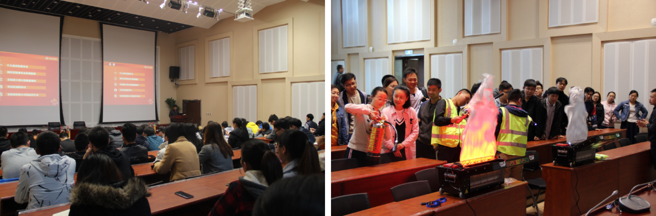 11月14日,保卫处联合新能源研究院在主楼C308举办了实验室消防安全知识讲座,安全科工作人员针对实验室常见消防安全隐患、近年来我校实验室火情火险典型案例、初期火灾应对方法、应急逃生方式、常见的消防设施使用方法等方面进行了详细的讲解。微型消防站工作人员现场演示了灭火器的使用方法,并指导学生使用灭火实训仪进行实操演练,新能源研究院全体研究生及部分青年教师参加了此次培训。