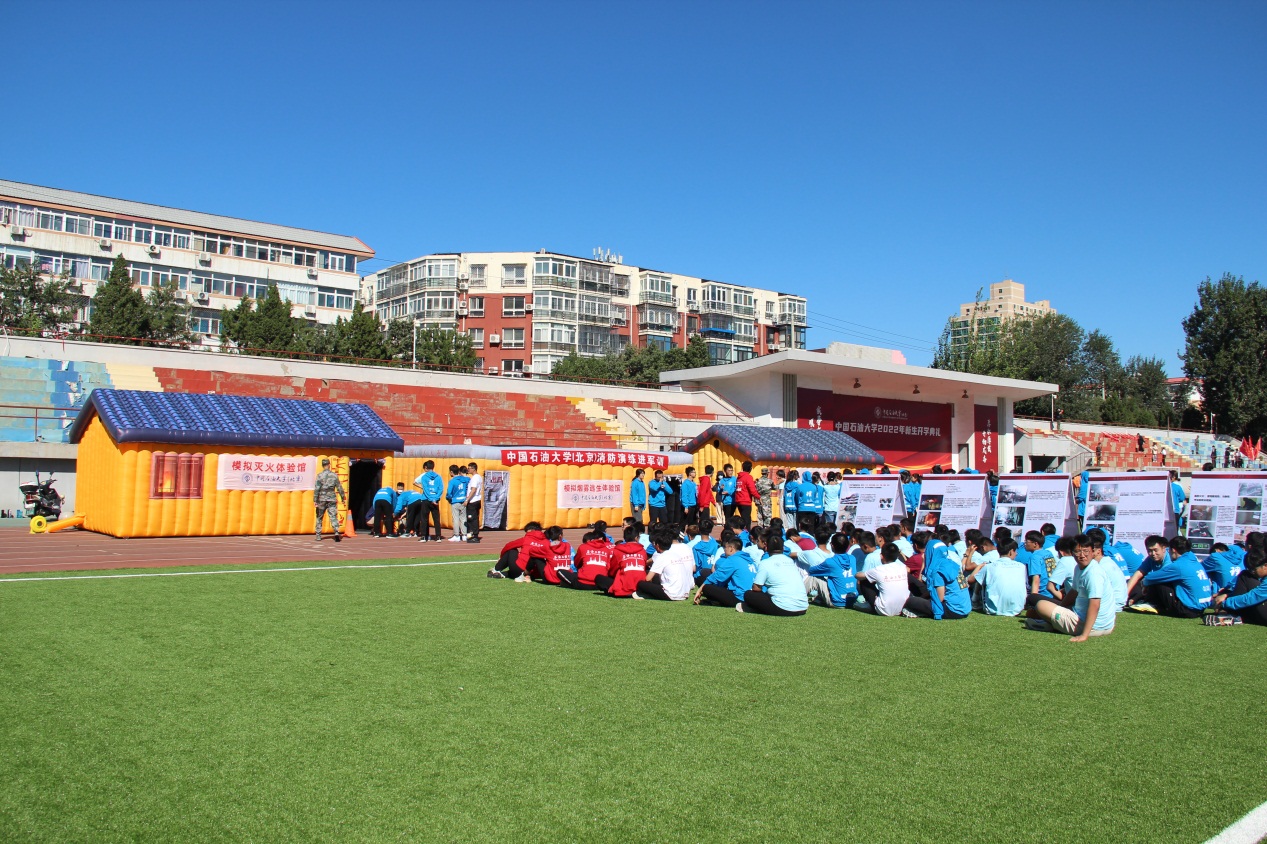 9月5日,中石大在北校园和东校园操场举行2022级本科新生消防演练活动,2300余名新生参与消防安全教育“第一课”。此次活动是针对新生组织的首场大型消防安全教育活动,由中石大保卫处联合学工处主办,委托赛诺创意(北京)科技发展有限公司组织实施。