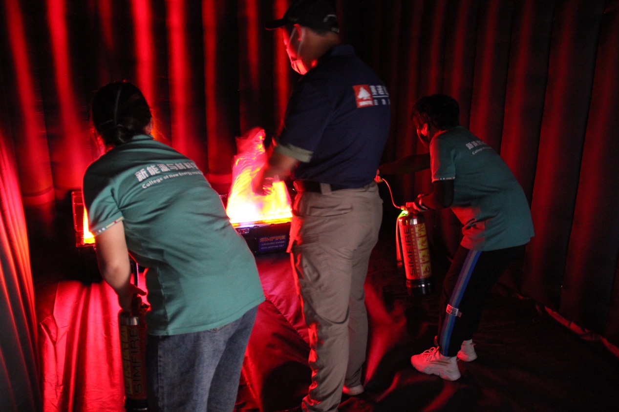 在消防安全常识讲解区,教官向同学们详细讲解了消防器材的使用方法和疏散逃生技巧。在模拟体验区,每名学生现场操作高仿真电子模拟灭火器进行考核,掌握使用灭火器的要领,体验火场灭火的技巧,而后纷纷弯腰低身,捂住口鼻,快速通过“浓烟弥漫”逃生通道,有序地抵达“安全地带”,进一步熟悉掌握“弯腰、低姿、捂口鼻、看指示牌”的逃生要领。