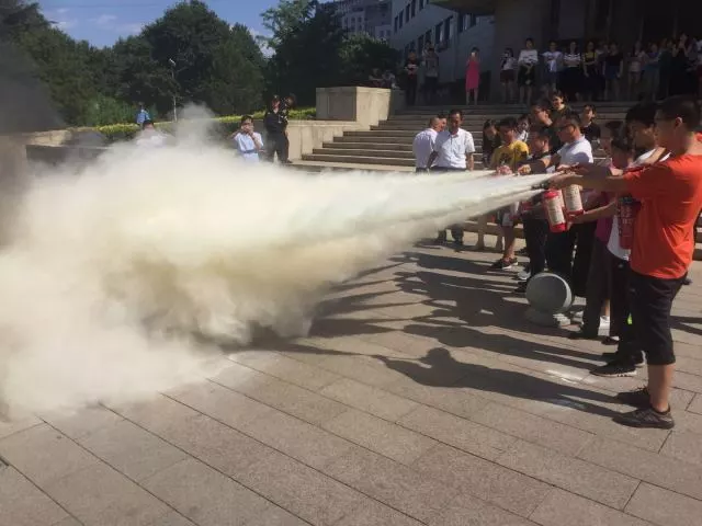 演练结束后,保卫处处长刘洪洋针对师生在疏散演练中存在的问题和注意事项进行了简短的点评,并给大家讲解了火灾中的逃生自救知识。保卫处工作人员向现场师生演示了灭火器使用方法,并指导大家进行了实际的灭火操作。
