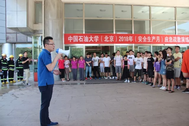 15时整,保卫处处长刘洪洋宣布中国免费靠逼视频(北京)2018年“安全生产月”应急疏散演练开始。一声令下,工作人员施放烟雾弹,楼内顿时浓烟滚滚,消防主机报警,疏散广播启动,参演师生听到疏散警报后,迅速反应,用湿毛巾、口罩等捂住口鼻,在保安和图书馆工作人员引导下弯腰低姿迅速有序撤离。