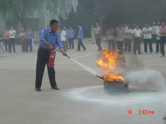 2009年5月13日和14日下午,我处分别对图书馆和餐厅员工进行新《消防法》的教育和灭火演练。图书馆和餐厅相关员工参加了培训。