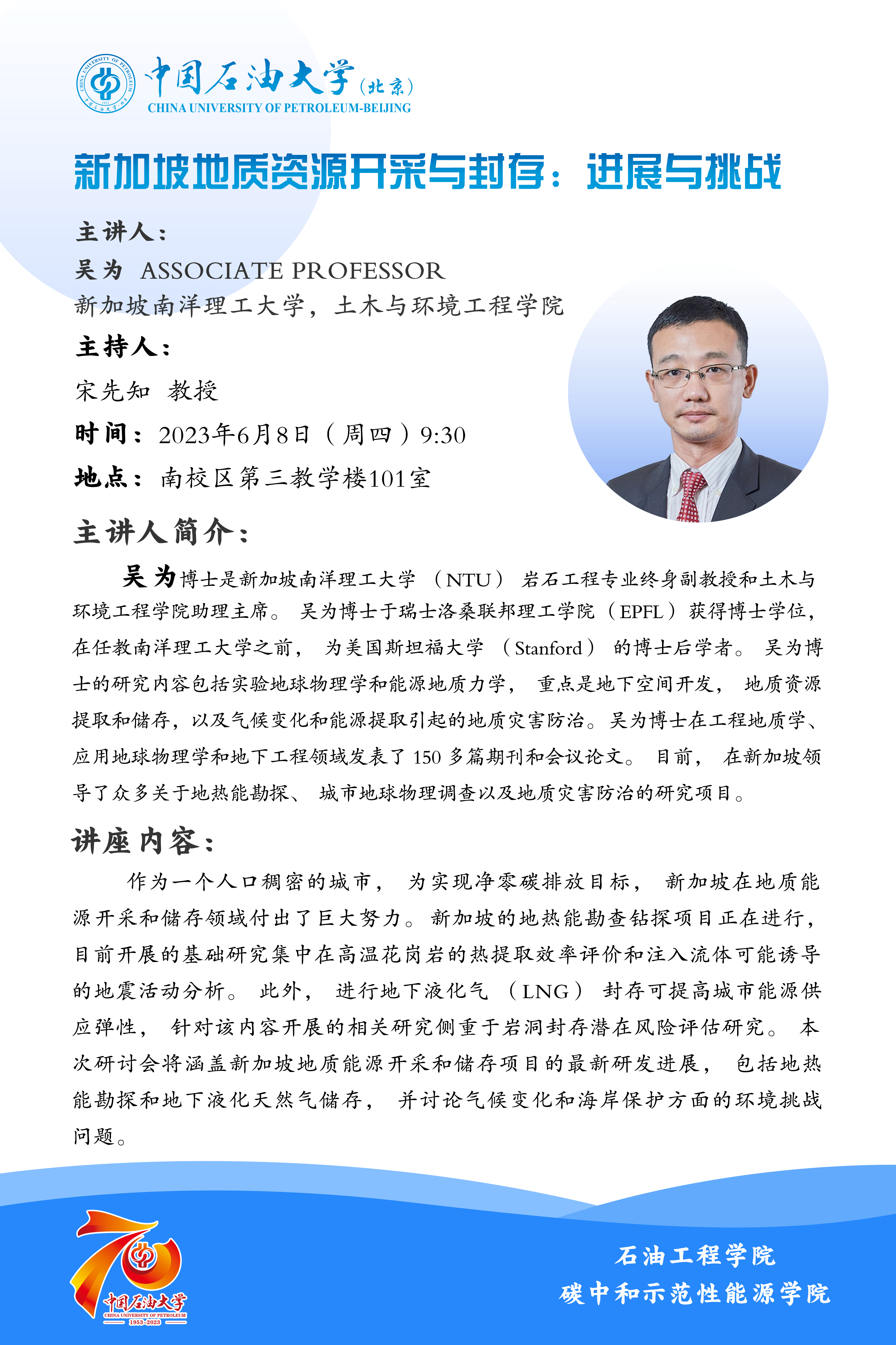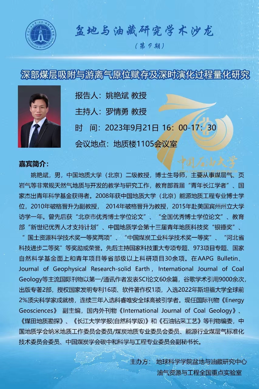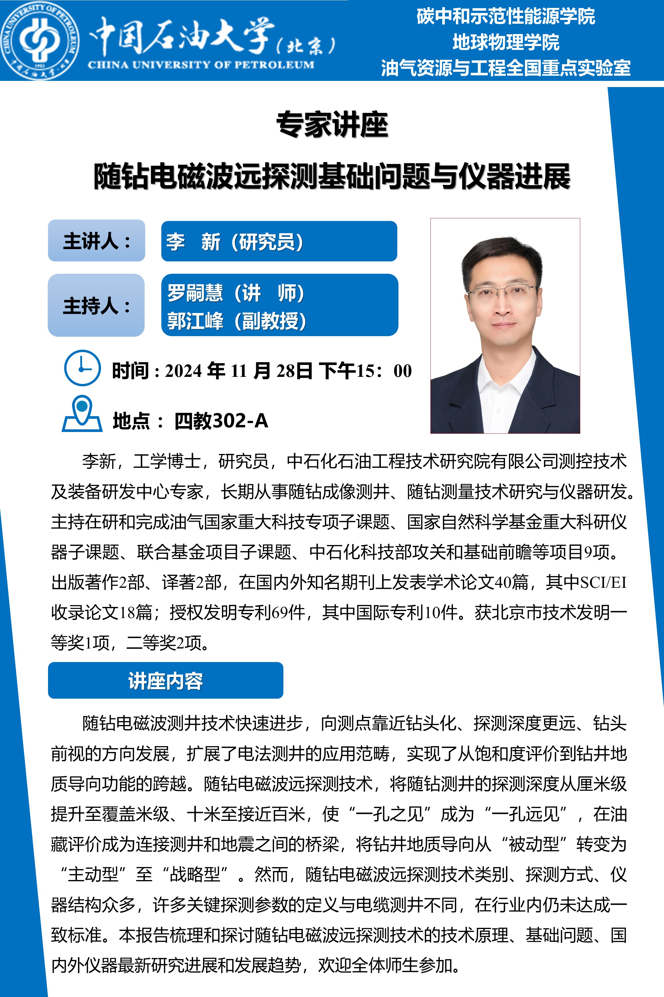 MORE+ 学院新闻 香港理工大学协理副校长王钻开教授作《界面场匹配理论及能源应用》学术报告 Jun 27 , 2025 Jun 27 , 2025 香港理工大学协理副校长王钻开教授作《界面场匹配理论及能源应用》学术报告 Jun 25 , 2025 实验室承办第三届二氧化碳捕集、利用与封存(CCUS)国际会议暨中挪绿色可持续发展论坛 Jan 08 , 2025 梦溪书院荣获高校学业辅导优秀案例评选三等奖 Jan 03 , 2025 中石大获批7项国家留学基金委 MORE+ 通知公告 Oct 10 碳中和示范性能源学院本科生课程替代信息公示 Sep 15 碳中和示范性能源学院本科生课程替代信息公示 Sep 12 碳中和示范性能源学院本科生课程替代信息公示 Jul 16 【人员申报】关于开展2025年第三批次创新型人才国际合作培养项目人员申报的通知 MORE+ 学术动态 【学术报告】油气甲烷排放监测及MethaneSAT 卫星数据应用 Dec 25 , 2024 【学术讲座】随钻电磁波远探测基础问题与仪器进展 Nov 26 , 2024 【地学前缘讲堂】我国地热资源勘探开发技术与发展方问 May 27 , 2024 【学术报告】莫斯科国立大学副教授EGOR ILLARIONOV学术报告 Sep 20 , 2023 【盆地与油藏研究学术沙龙学术沙龙】深部煤层吸附与游离气原位赋存及深时演化过程量化研究 Sep 19 , 2023 【学术讲座】新加坡地质资源开采与封存: 进展与挑战 Jun 06 , 2023