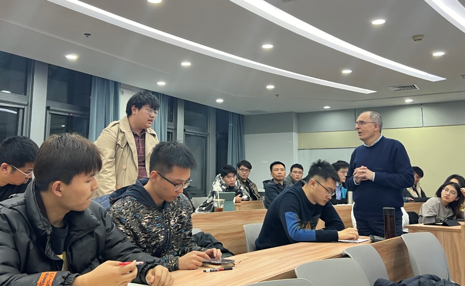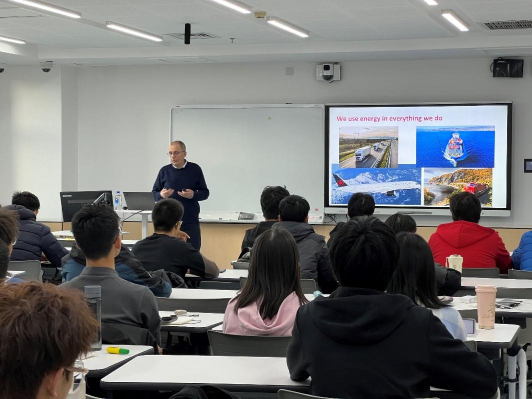 Ergun Kuru教授介绍了加拿大阿尔伯塔大学,石油工程专业及加拿大石油和天然气行业历史与现状;围绕当前和未来的世界能源需求,探讨全球能源结构,“能源转型”将如何发挥作用以满足未来的全球能源需求;讨论了油气、地热、氢能等能源的利弊。随后,Kuru教授解答了在场学生提出的问题,就CCUS技术和能源转型等问题和在场师生进行讨论。