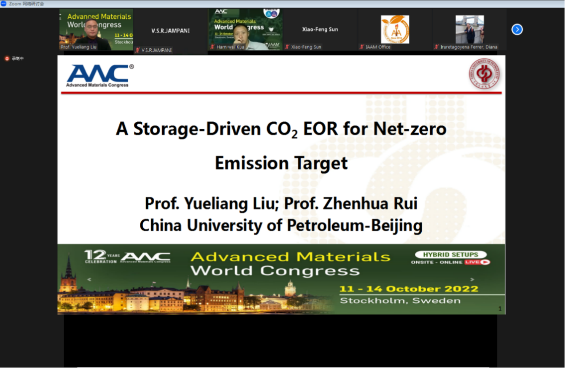 刘月亮副教授应IAAM邀请,于瑞典举办的先进材料系列讲座(Advanced Materials Lecture Series 2022, online)做了题为 “A Storage-Driven CO2 EOR Method for Net-zero Emission Target”的学术报告,向与会专家介绍了近期在二氧化碳提高油气采收率与地质封存协同机制方面的研究成果。报告聚焦二氧化碳强封助采绿色环保材料科学研究的关键问题,为新一代油气碳中和领域先进功能材料开发与应用提供借鉴意义,该报告受到了来自中国香港、美国、日本、韩国、加拿大、德国、瑞典、英国、法国、比利时、荷兰等国家或地区专家学者的关注与好评,进行了热烈探讨与交流,并达成了友好合作交流的意向。